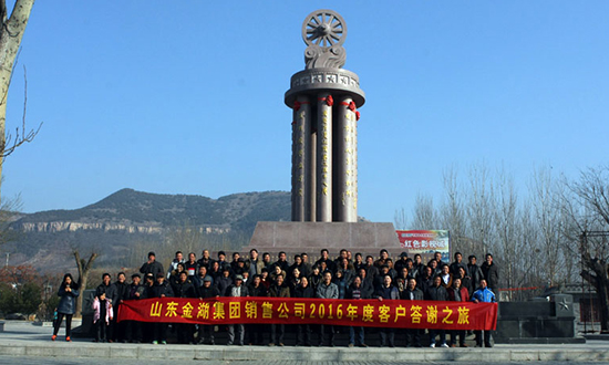 銷售公司為答謝新老客戶組織一同到英雄孟良崮參觀旅游來源:金湖集團(tuán) 發(fā)布時(shí)間:2015-12-19