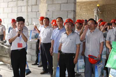 與會人員現場觀摩北城區魯商中心工地預拌砂漿施工現場