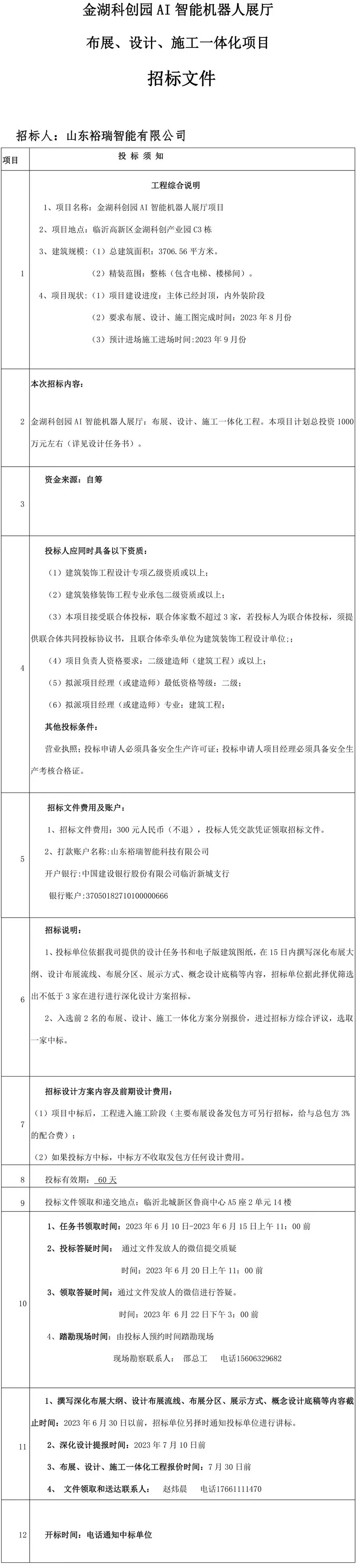 金湖科創產業園AI智能機器人展廳招標文件(點擊下載)